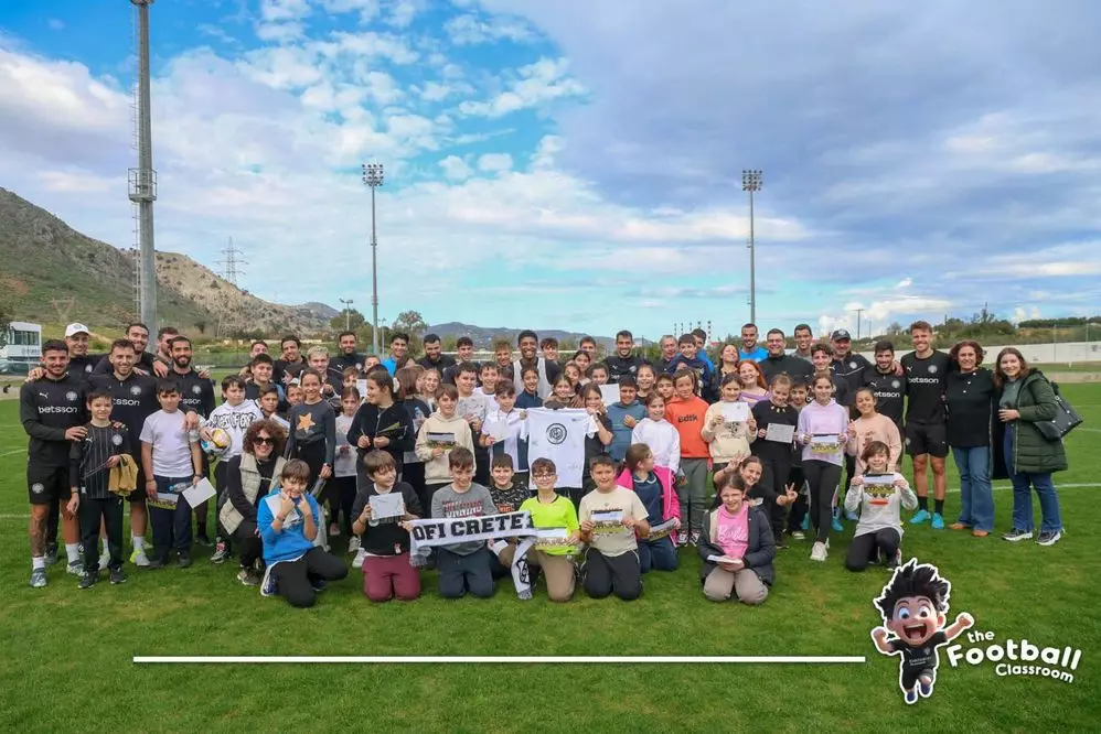 Εκδρομή του 45ου Δημοτικού Σχολείου Ηρακλείου στο Βαρδινογιάννειο Αθλητικό Κέντρο, στο πλαίσιο του προγράμματος της ΠΑΕ ΟΦΗ “The Football Classroom”.