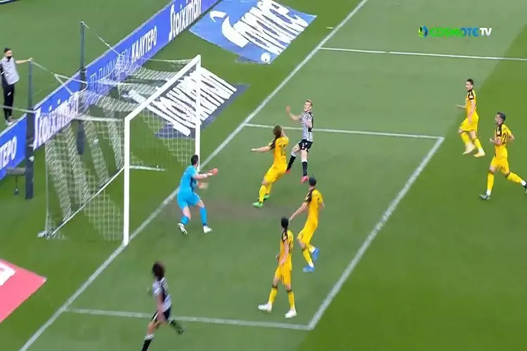 Δέκα λεπτά πριν την ολοκλήρωση του πρώτου ημιχρόνου, ο ΠΑΟΚ έφτασε μια… ανάσα από το 1-0, όταν ο Σφιντέρσκι βρέθηκε σε πλεονεκτική θέση όμως η κεφαλιά του πέρασε έξω από το δοκάρι του Τσιντώτα.