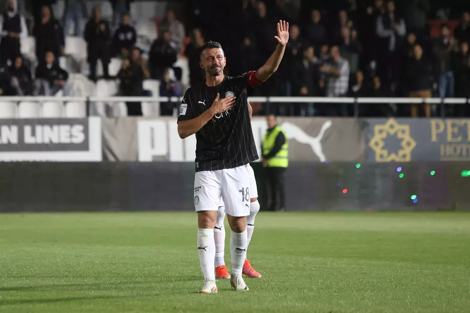 Με ασπρόμαυρο φόντο και την πινακίδα της Τρίπολης προανάγγελλε την παρουσία του στο ματς της χρονιάς για την ομάδα της Κρήτης.
