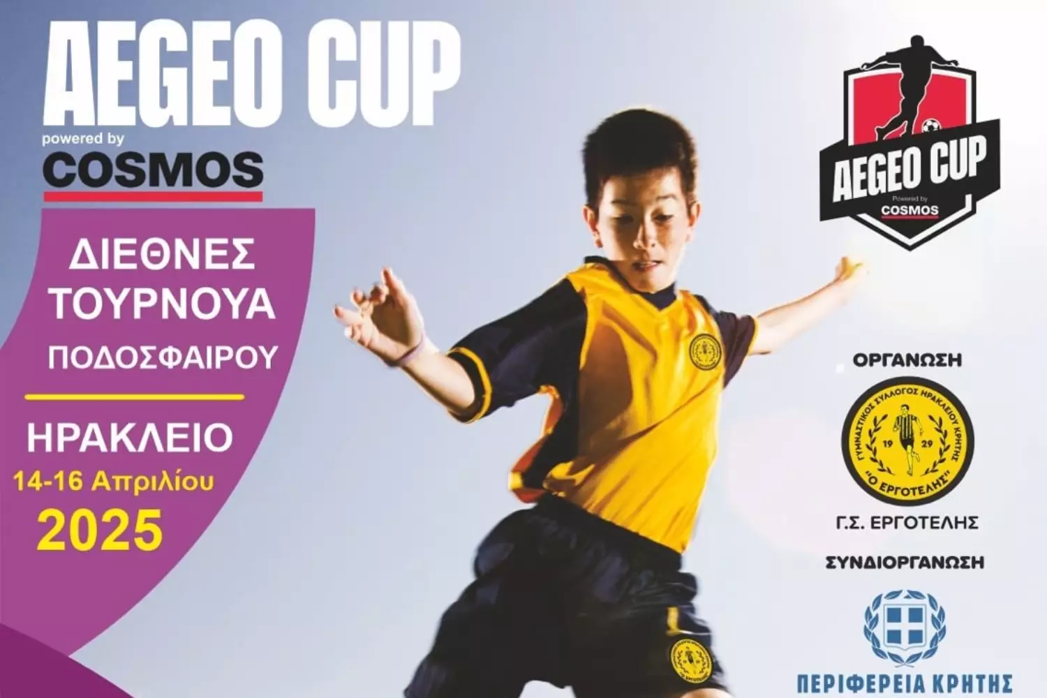 Το AEGEO CUP 2025, με την οργάνωση του Γ.Σ. Εργοτέλης και συνδιοργάνωση της Περιφέρειας Κρήτης, θα διεξαχθεί και φέτος από 14 έως 16 Απριλίου, στα γήπεδα του Ηρακλείου.