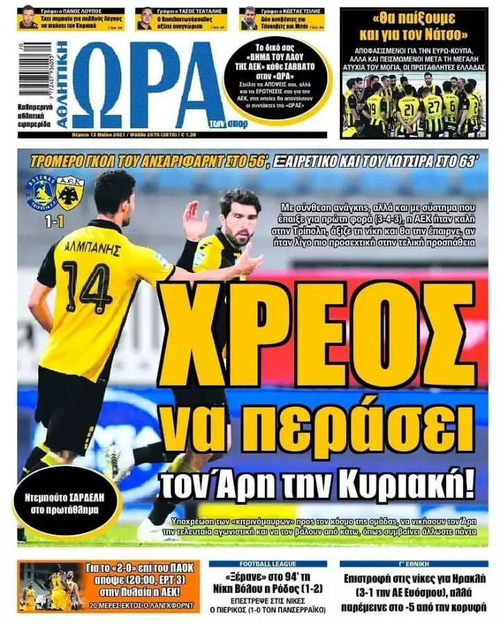 HOT NEWS ΜΕΓΑΛΗ ΠΡΟΚΡΙΣΗ ΓΙΟΥΧΤΑ ΜΠΟΥΣΗΣ: «ΜΟΙΡΑΖΕΤΑΙ ΤΟ ΟΡΑΜΑ ΜΑΣ Ο ΚΟΝΤΗΣ» ΞΕΚΙΝΗΣΕ Η ΕΠΟΧΗ ΚΟΝΤΗ ΙΣΟΠΑΛΟ ΤΟ ΝΤΕΡΜΠΙ ΑΝΕΒΑΙΝΕΙ Ο ΠΑΟΚ ΕΦΗΜΕΡΙΔΕΣΚΥΡΙΕΣ ΕΙΔΗΣΕΙΣ Τα αθλητικά πρωτοσέλιδα της ημέρας(13/05) Δημοσιογραφικό Τμήμα 13/05/2021 - 08:36 FacebookTwitterWhatsAppLinkedinEmailΤυπώνωCopy URL Δείτε παρακάτω τα πρωτοσέλιδα των αθλητικών εφημερίδων για σήμερα Πέμπτη 13 Μαΐου του 2021. ΔΙΑΒΑΣΤΕ ΕΠΙΣΗΣ: Β. Μουτζούρης: «Αν είμαστε αυτοί που πρέπει, θα επιστρέψουμε στις νίκες» Αγγ. Κασσωτάκης: «Να είμαστε σοβαροί και πειθαρχημένοι» Μπήκε ο Ρακόνιατς, απρόοπτο με Λέουις Τα αποτελέσματα από τους αγώνες της Τετάρτης (29/10) Ξεκίνησε η εποχή Κόντη στον ΟΦΗ Α1 ΕΠΣΗ: Ισοπαλίες σε Τυμπάκι και Ελιά, τρίποντο για ΠΑΟΚ ΡΟΗ ΕΙΔΗΣΕΩΝ ΠΑΝΟΜ Β. Μουτζούρης: «Αν είμαστε αυτοί που πρέπει, θα επιστρέψουμε στις νίκες» Δημοσιογραφικό Τμήμα 30/10/2025 14:54 ΑΕΚΑΤΣΑΜΠΑ Αγγ. Κασσωτάκης: «Να είμαστε σοβαροί και πειθαρχημένοι» Δημοσιογραφικό Τμήμα 30/10/2025 14:47 ΚΥΡΙΕΣ ΕΙΔΗΣΕΙΣ Μπήκε ο Ρακόνιατς, απρόοπτο με Λέουις Μάνος Φουστανάκης 30/10/2025 14:36 ΔΩΡΙΕΑΣ Τα συλλυπητήρια του Δωριέα στον Γ. Κουντάκη Μάνος Φουστανάκης 30/10/2025 14:29 Α2 ΕΠΣΗ Άλλαξε έδρα και ώρα το ΠΟΗ – Νέος Ηρόδοτος Μάνος Φουστανάκης 30/10/2025 14:09 ΚΟΡΑΚΑΣ Ψάχνει τον εκλεκτό για τον πάγκο ο Κόρακας Μάνος Φουστανάκης 30/10/2025 14:00 SUPER LEAGUE 1 O Παναθηναϊκός ανακοίνωσε Τεττέη και Παντελίδη Μάνος Φουστανάκης 30/10/2025 13:30 Όλες οι ειδήσεις ΔΗΜΟΦΙΛΗ Α1 ΕΠΣΗ Τα αποτελέσματα από τους αγώνες της Τετάρτης (29/10) ΟΦΗ Ξεκίνησε η εποχή Κόντη στον ΟΦΗ Α1 ΕΠΣΗ Α1 ΕΠΣΗ: Ισοπαλίες σε Τυμπάκι και Ελιά, τρίποντο για ΠΑΟΚ ΠΟΑ «Λύγισε» στα πέναλτι και αποχαιρέτησε το Κύπελλο Ερασιτεχνών ο ΠΟΑ ΡΩΜΑΝΟΣ Μοιρασιά στην Ελιά για Ρωμανό και Αετό Ανωγείων
