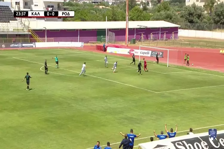 Ο Μπουσμπίμπα βγήκε τετ-α-τετ μετά από όμορφη μπαλιά του Παυλίδη και με ένα άνετο πλασέ άνοιξε το σκορ για την ομάδα του κόντρα στην Ρόδο.