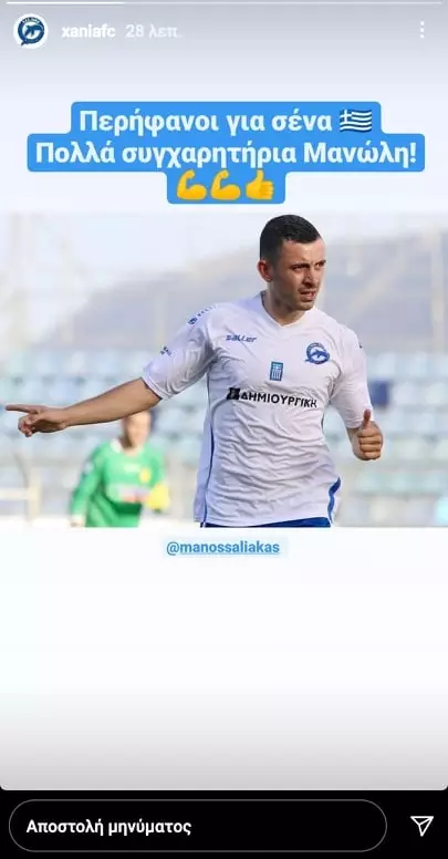 O 25χρονος δεξιός οπισθοφύλακας του ΠΑΣ Γιάννινα, είχε αγωνιστεί με τη φανέλα των Χανίων, για δύο σεζόν, 2017-2018 και 2018-2019, με την ΠΑΕ με ιστορία της στα Μέσα Κοινωνικής Δικτύωσης, συνεχάρη τον πρώην ποδοσφαιριστή για την κλήση του στο αντιπροσωπευτικό μας συγκρότημα.
