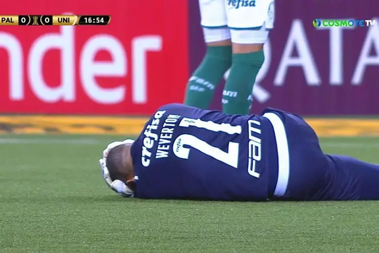 Στην αναμέτρηση Παλμέιρας-Ουνιβερσιτάριο για το Copa Libertadores, ο ποδοσφαιριστής των φιλοξενούμενων, Κιντέρο, στην προσπάθεια του να σκοράρει, χτύπησε με πολύ άσχημο τρόπο, τον τερματοφύλακα των γηπεδούχων, στο πρόσωπο!
