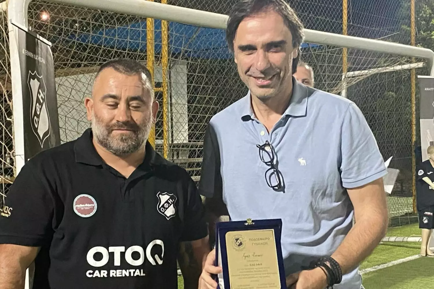 Ο Ηλίας Πουρσανίδης εκπροσώπησε την ΠΑΕ ΟΦΗ στην παρουσίαση της φανέλας της γυναικείας ομάδας και έλαβε την τιμητική πλακέτα.