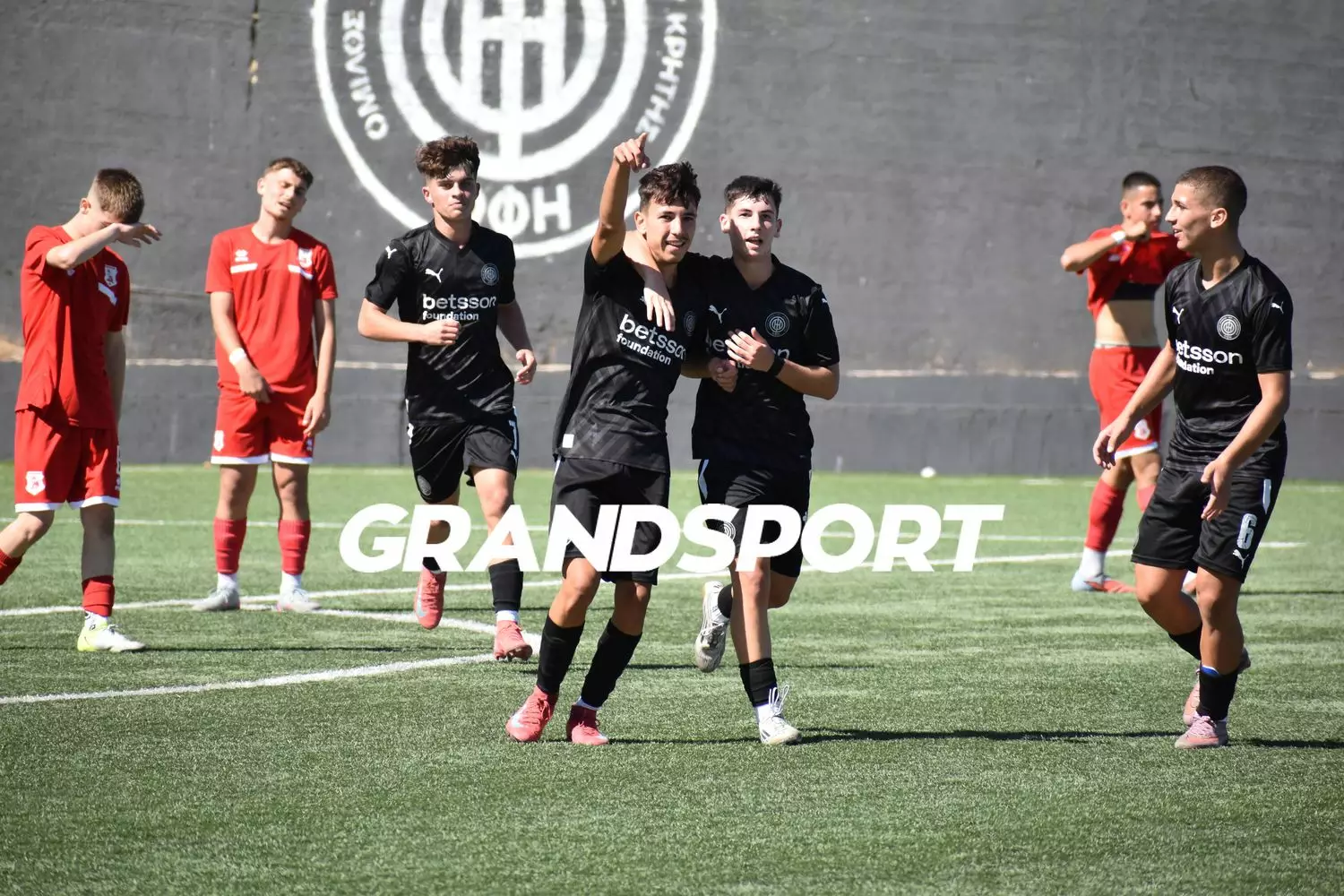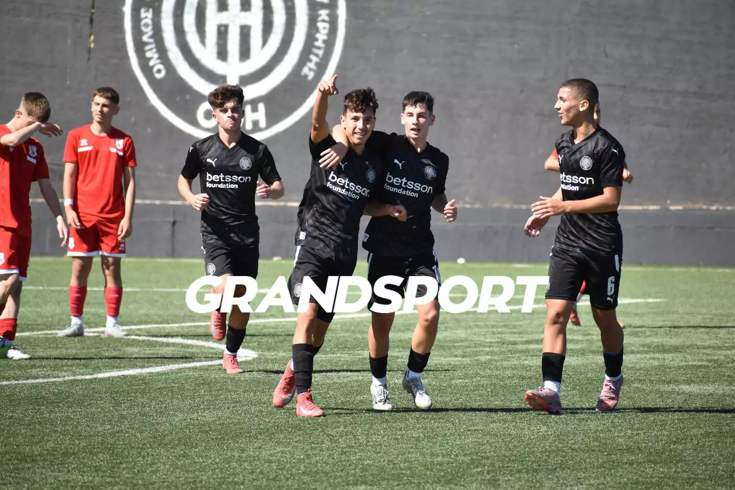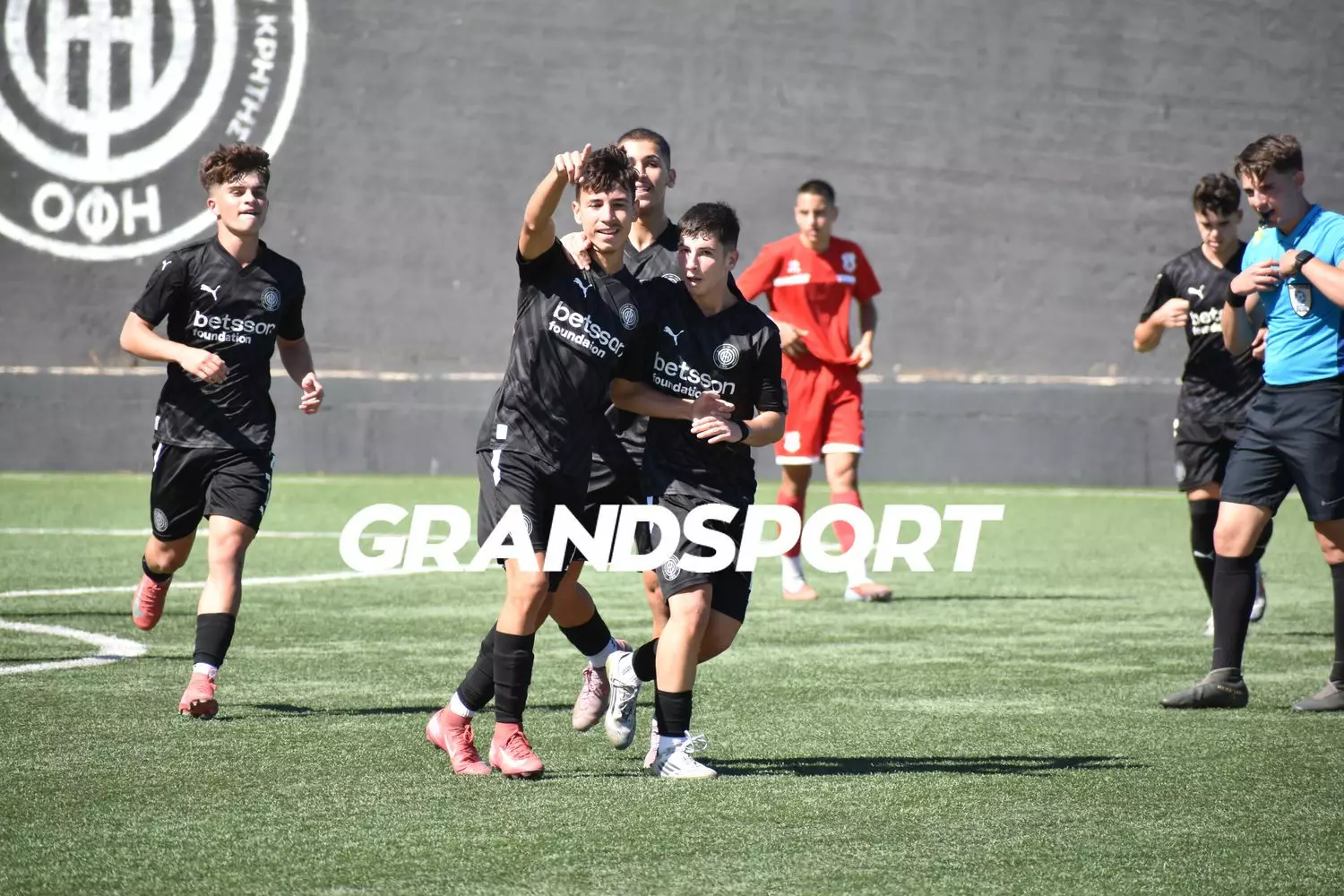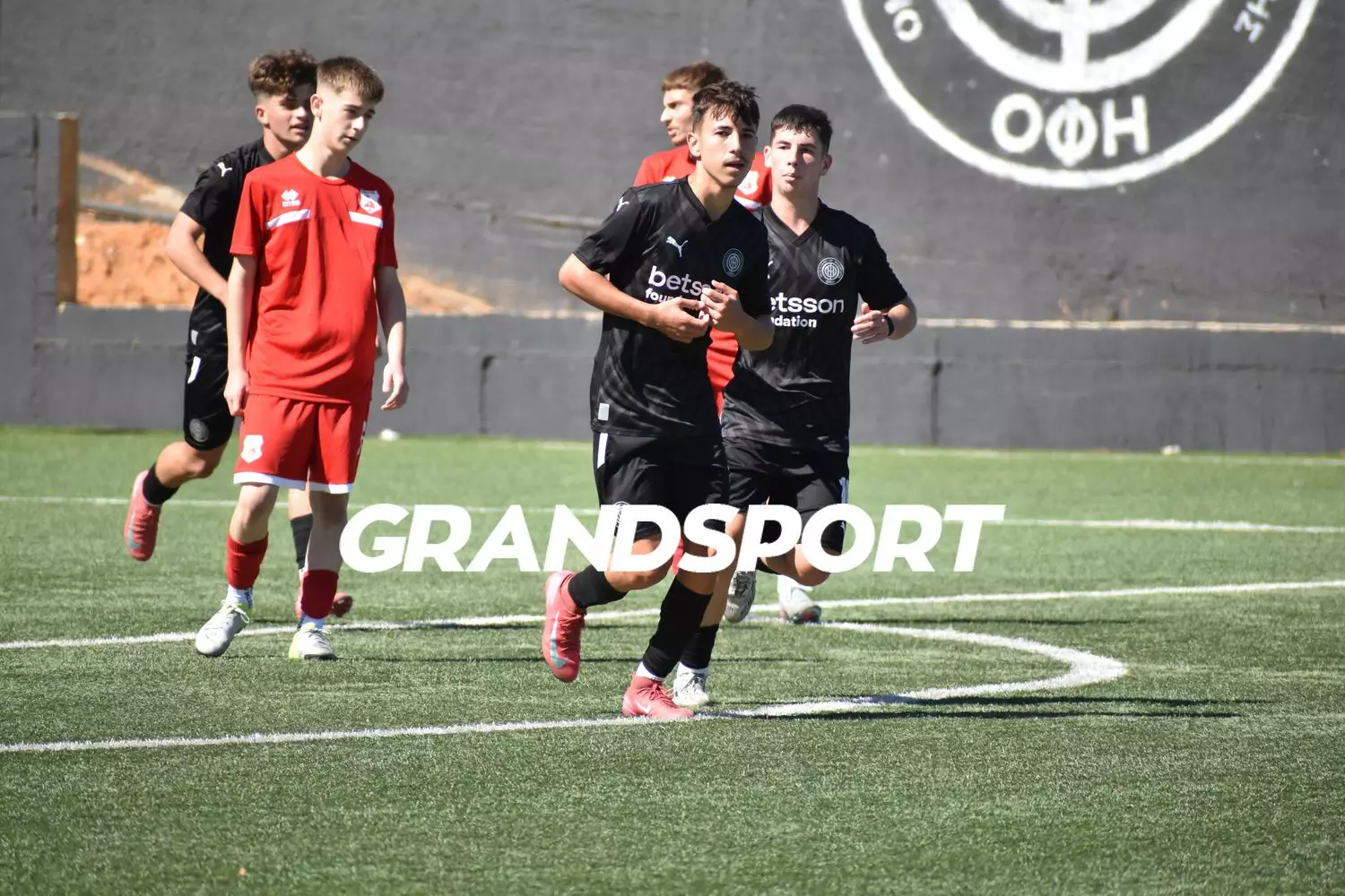 Η Κ17 του ΟΦΗ, πανηγύρισε την πρώτη της νίκη στο πρωτάθλημα υποδομών της Super League για τη ποδοσφαιρική περίοδο 2025-26, επικρατώντας στο Βαρδινογιάννειο Αθλητικό Κέντρο με το εμφατικό 4-0 του Πανσερραϊκού στο εξ αναβολής παιχνίδι της 2ης αγωνιστικής.