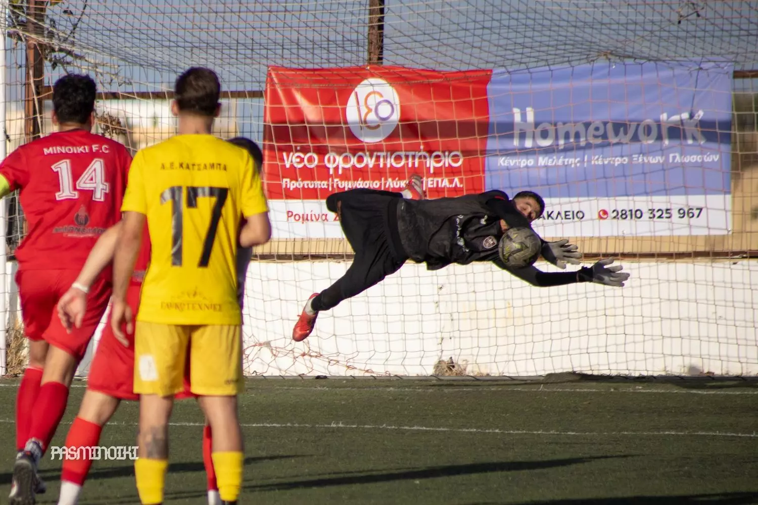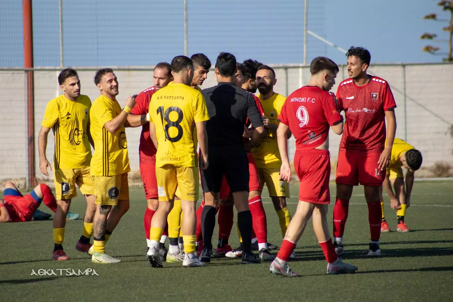 Ισόπαλο με 1-1 ολοκληρώθηκε το παιχνίδι της Μινωικής με την ΑΕΚατσαμπά για την 7η αγωνιστική της Α1 ΕΠΣΗ - «GT KOSMOS», σε μία αναμέτρηση που κρίθηκε με δύο γκολ στα τελευταία λεπτά.