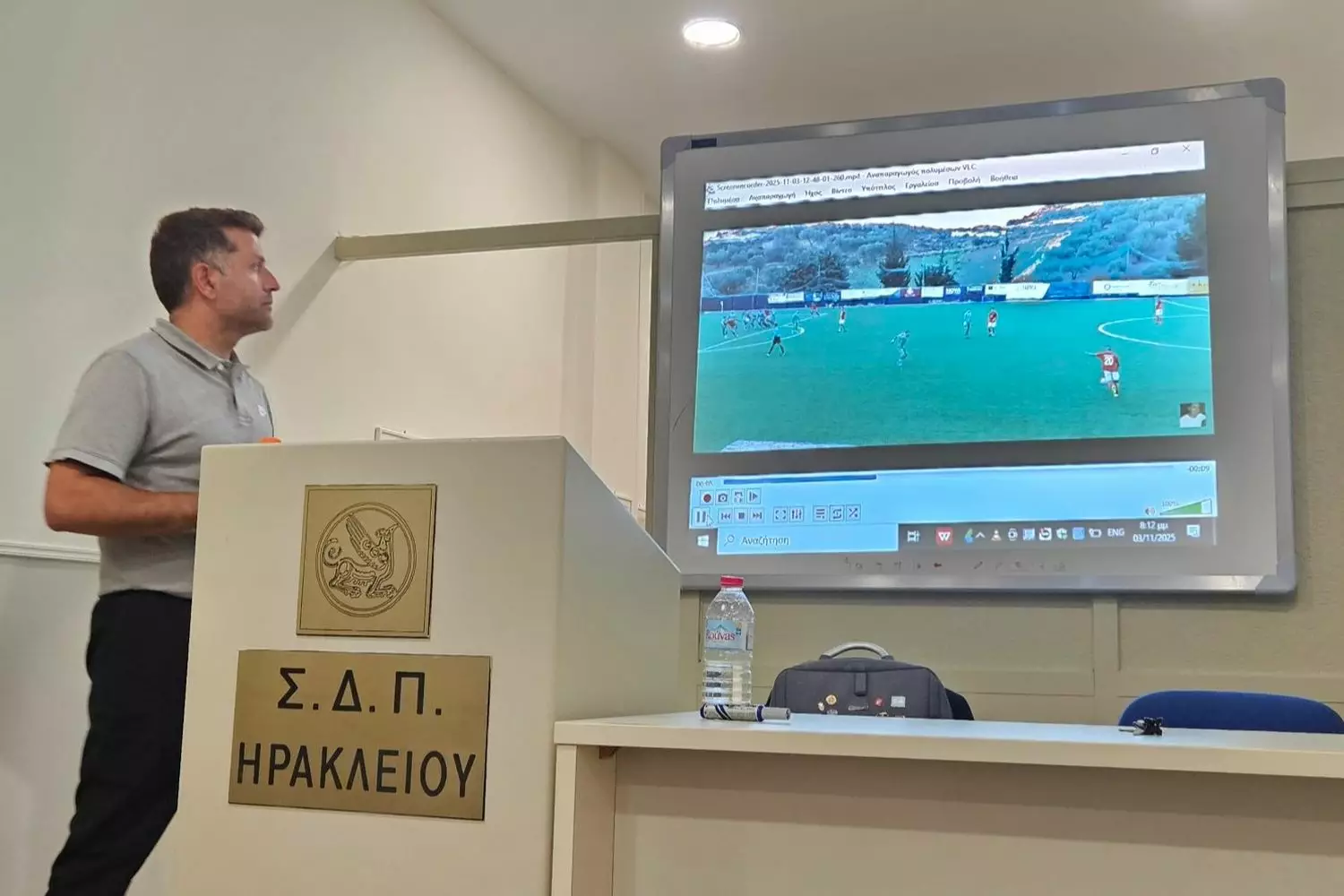 Με στόχο τη διαρκή επιμόρφωση και βελτίωση των στελεχών της διαιτησίας, ο Σύνδεσμος Διαιτητών Ποδοσφαίρου Ηρακλείου πραγματοποίησε εκπαιδευτική συνάντηση αλλά και εξετάσεις στους Κανόνες του Παιχνιδιού, με τη συμμετοχή εν ενεργεία διαιτητών και βοηθών.