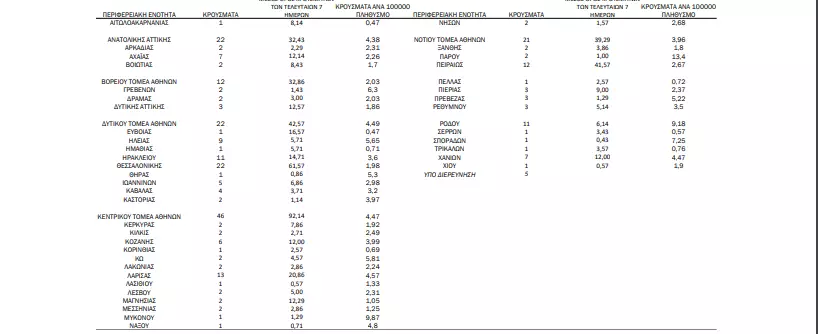 Με βάση τα επιβεβαιωμένα κρούσματα των τελευταίων 7 ημερών, 35 θεωρούνται σχετιζόμενα με ταξίδι από το εξωτερικό και 1.370 είναι σχετιζόμενα με ήδη γνωστό κρούσμα.