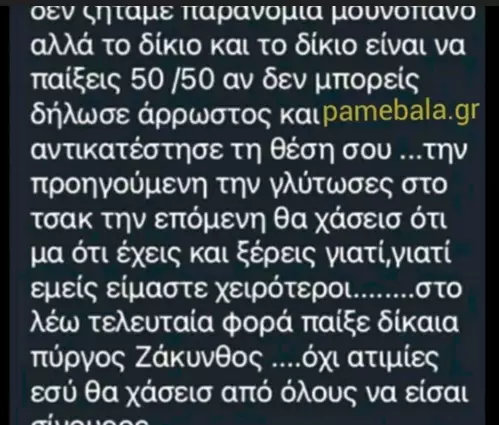 Καθώς ο αποστολέας του, που φαίνεται να προμηθεύτηκε από την πόλη της Καλαμάτας το… πακιστανικό τηλέφωνό του για να νουθετήσει τον διαιτητή.