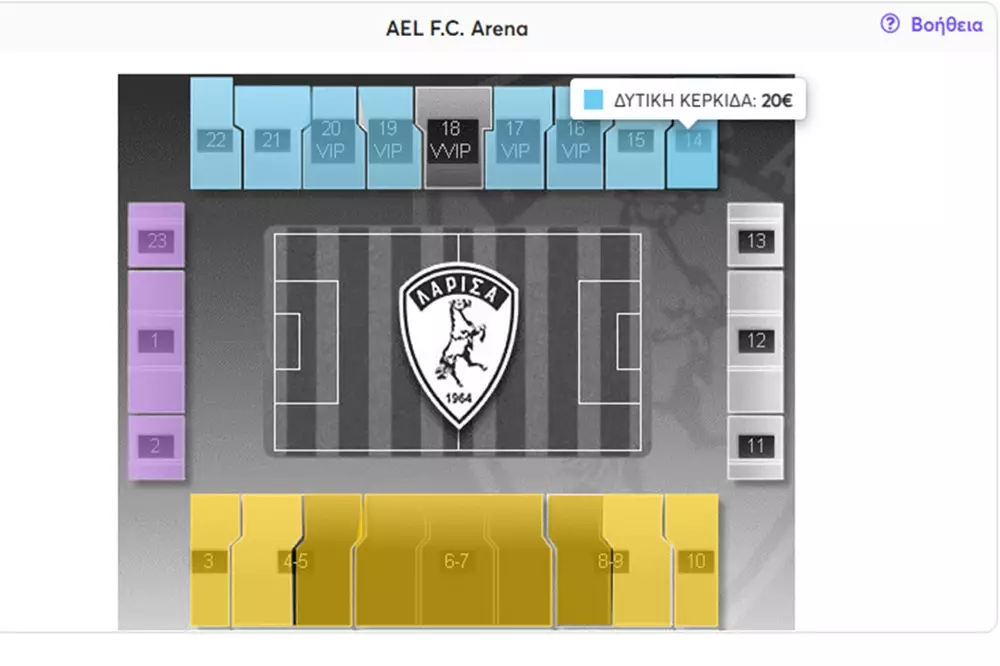 Η θύρα 14, το κόστος του εισιτηρίου είναι 20€ και προϋποθέτει αγορά Κάρτας Φιλάθλου ΑΕΛ: