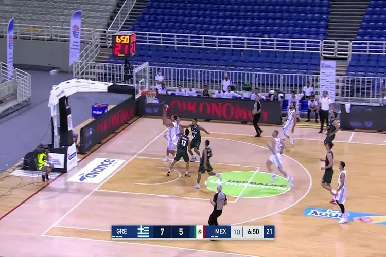 Με ένα όμορφο coast-to-coast ξεκίνησε τον αγώνα κόντρα στο Μεξικό για την 1η αγωνιστική του “Ακρόπολις” ο παίκτης του Ολυμπιακού, Γιαννούλης Λαρεντζάκης.