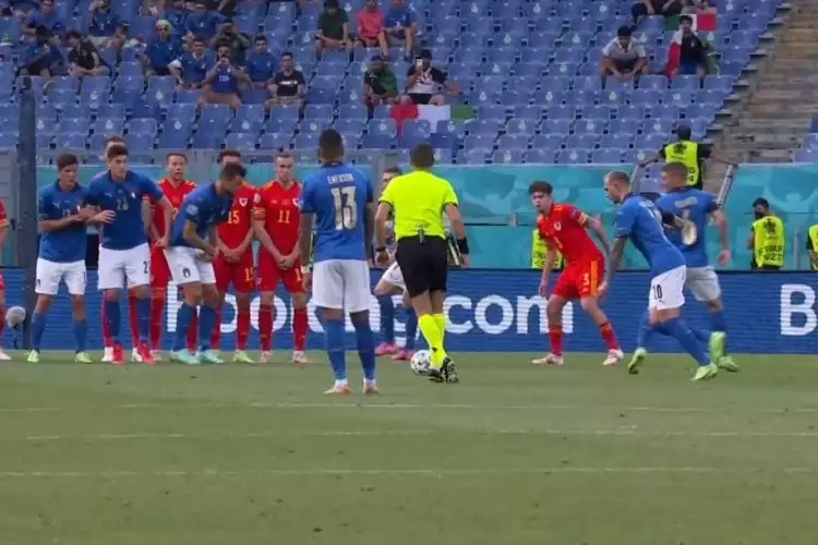 Με απευθείας εκτέλεση φάουλ ο Μπερναντέσκι, απείλησε την εστία των Ουαλών, όμως η μπάλα χτύπησε στο δεξί κάθετο δοκάρι.