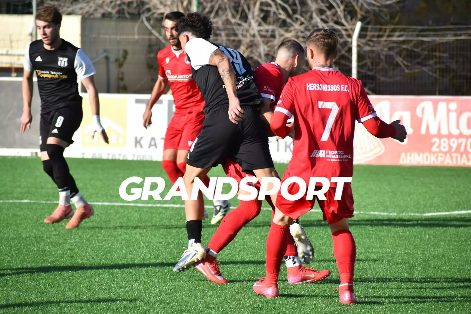 Ισόπαλο με σκορ 1-1 ολοκληρώθηκε το μεγάλο ντέρμπι της 16ης αγωνιστικής της Α1 ΕΠΣΗ ανάμεσα στη Χερσόνησο και τον ΑΟ Τυμπακίου, σε ένα παιχνίδι που διεξήχθη κάτω από ιδιαίτερα δύσκολες συνθήκες λόγω των πολύ δυνατών ανέμων που επικρατούσαν και επηρέασαν σε μεγάλο βαθμό την ποιότητα και τον ρυθμό του αγώνα.