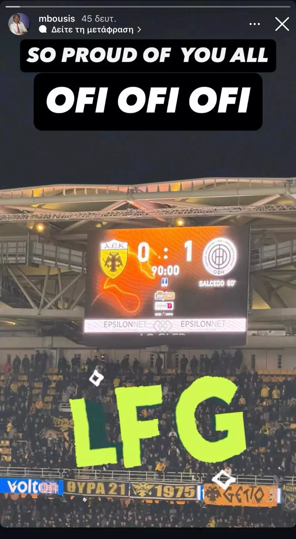 «Τόσο περήφανος για όλους εσάς, ΟΦΗ, ΟΦΗ, ΟΦΗ».