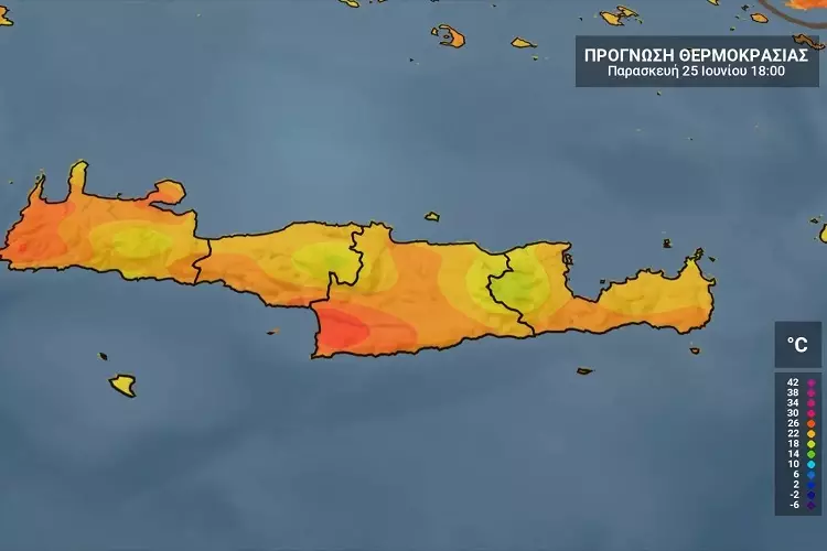Συνεχίζονται οι υψηλές θερμοκρασίες και σήμερα στην Κρήτη, καθώς σύμφωνα με την πρόβλεψη η θερμοκρασία αναμένεται να φτάσει σήμερα στους 39 βαθμούς Κελσίου.