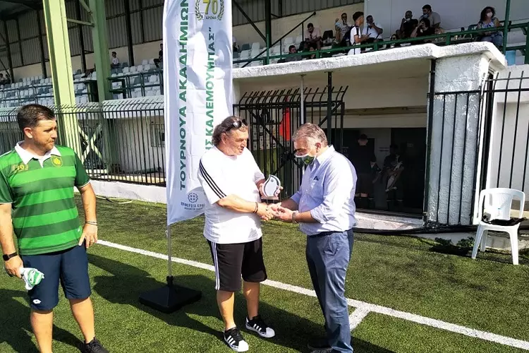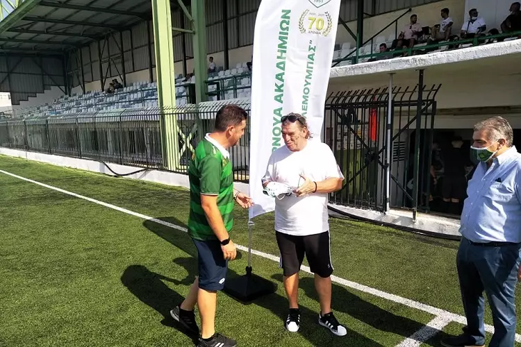 Λίγο πριν την έναρξη του τουρνουά ακαδημιών “Γιάννης Καλέμπουμπας” ο πρόεδρος των πρασίνων Γιώργος Λέλεκας βράβευσε τον παλαίμαχο διεθνή ποδοσφαιριστή Δημήτρη Πίττα για την προσφορά του στον αθλητισμό.