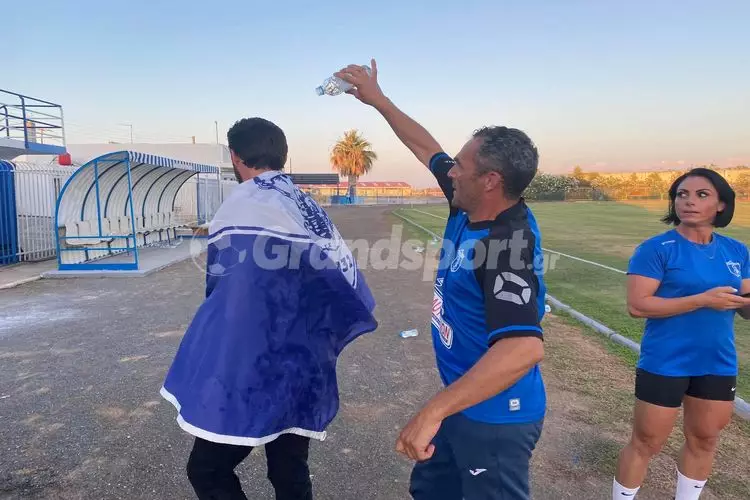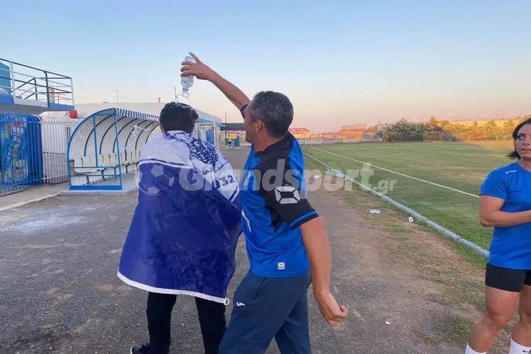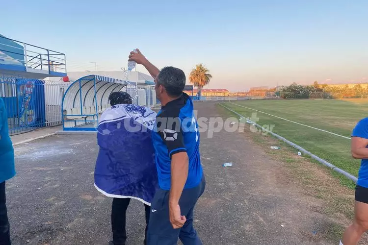 Οι παίκτες της ομάδας της Νέας Αλικαρνασσού… δρόσισαν τον προπονητή τους, ρίχνοντάς του πολλά μπουκάλια νερό, με τον νεαρό τεχνικό να απολαμβάνει τις στιγμές του θριάμβου.