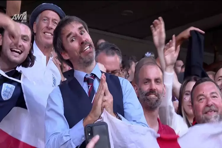 Ο σωσίας του τεχνικού της Αγγλίας βρίσκεται στις εξέδρες του Γουέμπλεϊ και μαγνήτισε τα βλέμματα όλων. Στην ίδια εξέδρα και ένας Άγγλος οπαδός με μία γιγάντια μάσκα του Μαγκουάιρ.