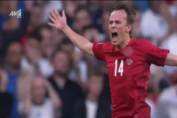 Στο 30ο λεπτό η Δανία πήρε προβάδισμα στο σκορ κόντρα στην Αγγλία με τον Ντάμσγκααρντ, ο οποίος σκόραρε ένα εντυπωσιακό φάουλ.