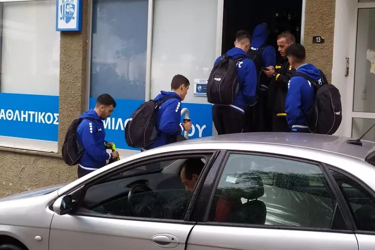 Οι «μπλε» συγκεντρώθηκαν το μεσημέρι της Τετάρτης στα γραφεία της ομάδας από όπου και έφυγαν με προορισμό το Ρέθυμνο για την αναμέτρηση της 2ης αγωνιστικής του πρωταθλήματος της Γ Εθνικής κόντρα στον Άρη Ρεθύμνου.