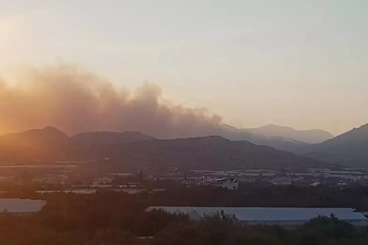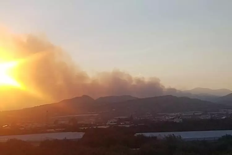 Οι συνθήκες κάτω από τις οποίες επιχειρείται η κατάσβεση της πυρκαγιάς είναι δύσκολες καθώς πνέουν υψηλής εντάσεως άνεμοι στην περιοχή.