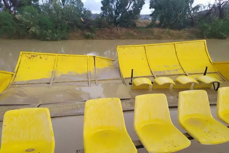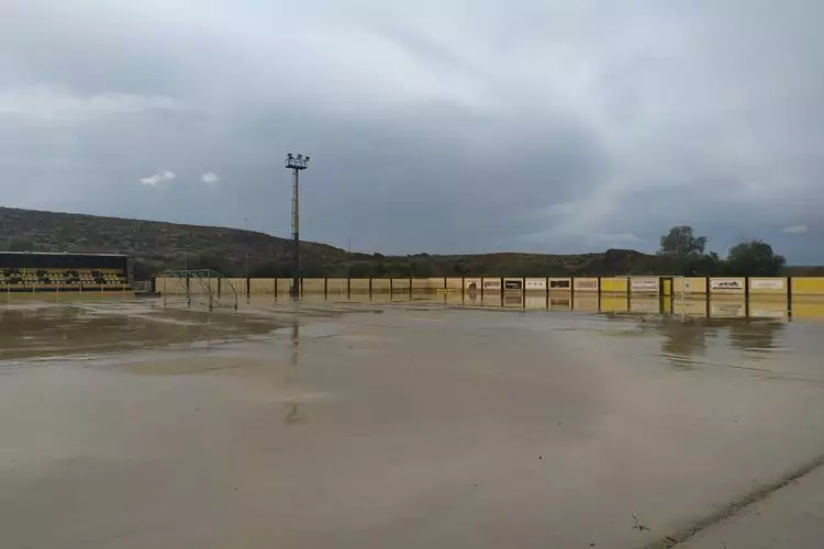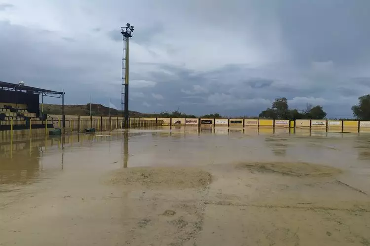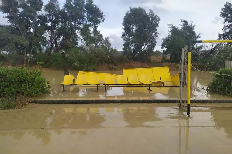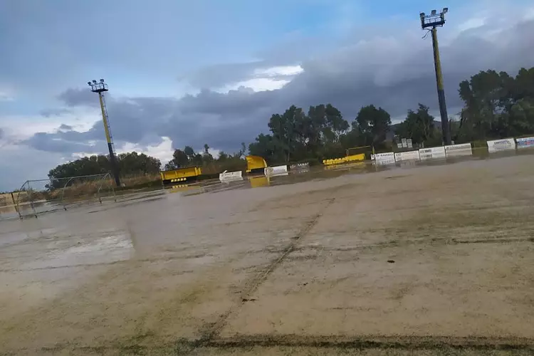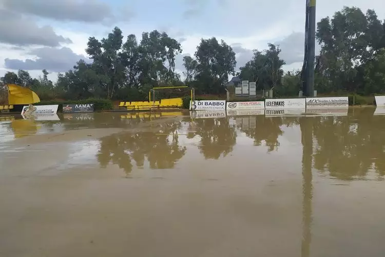 Πέραν του αγωνιστικού χώρου, η ένταση του νερού, παρέσυρε τον πάγκο των φιλοξενούμενων ενώ έχει κάνει αρκετές ακόμα ζημιές.