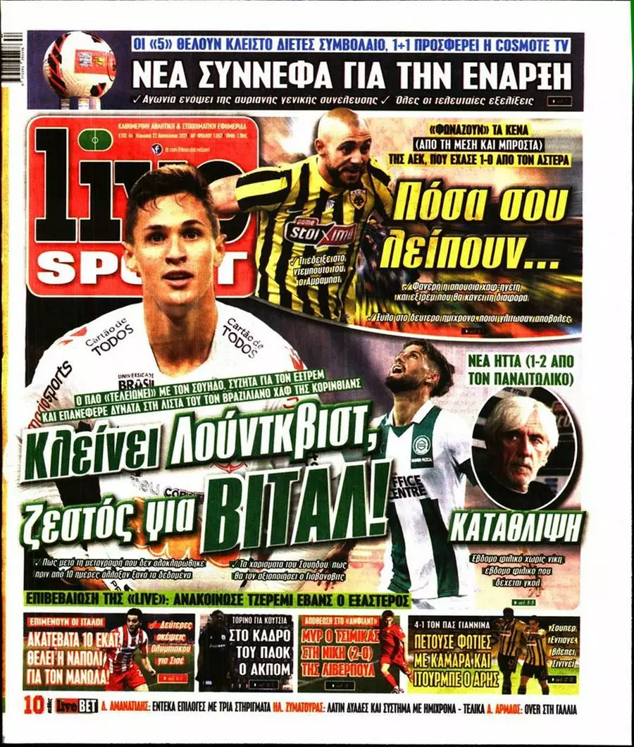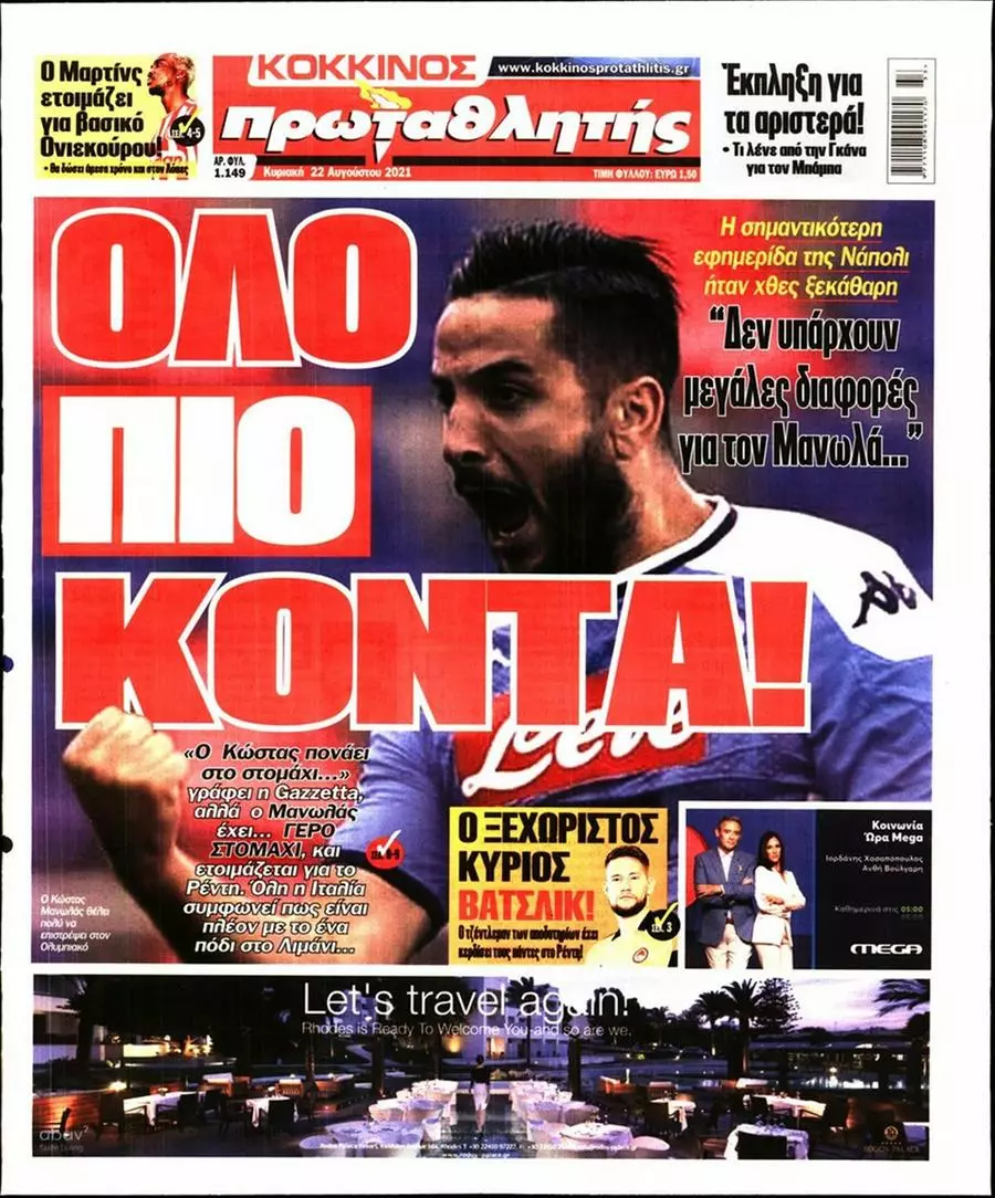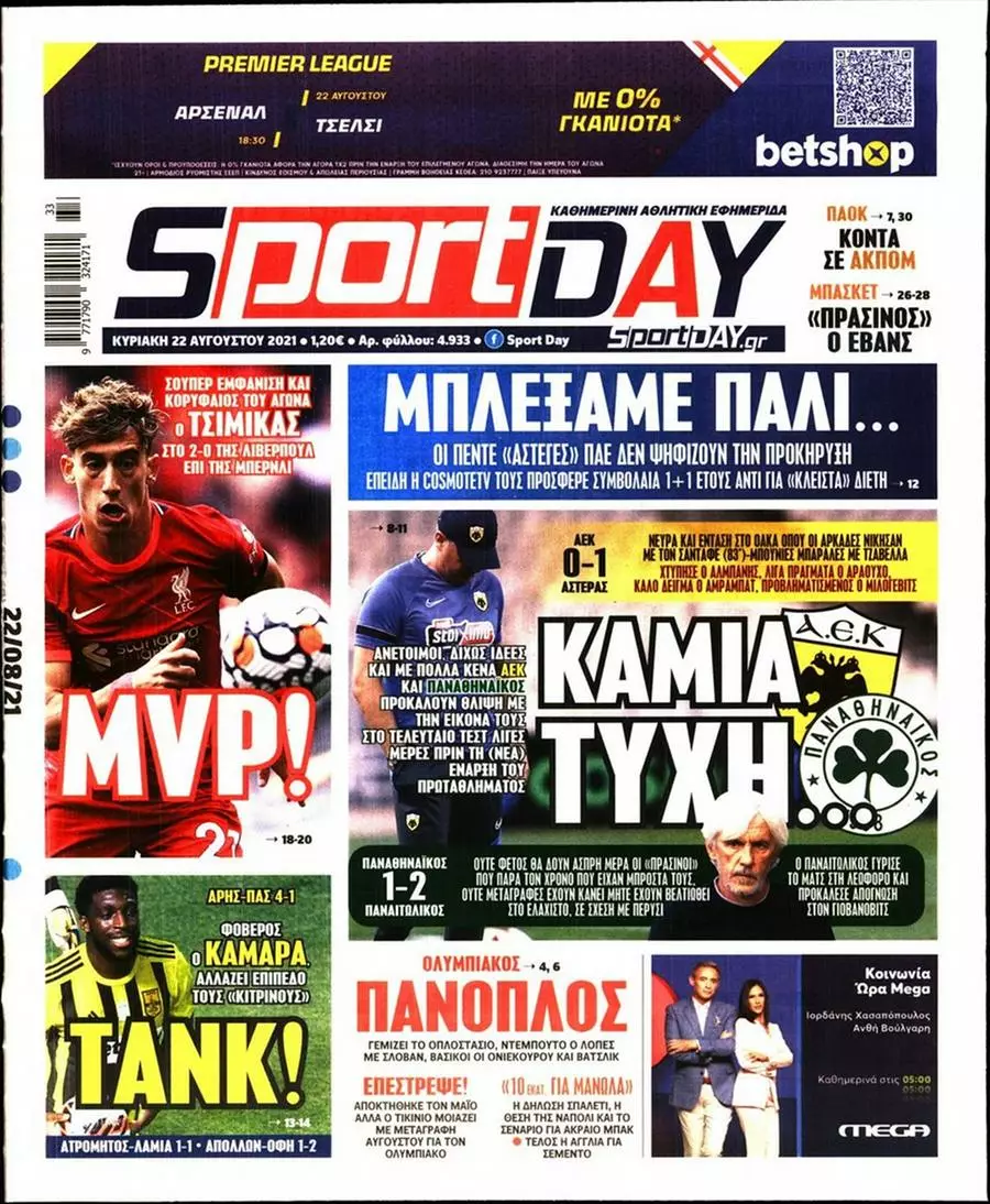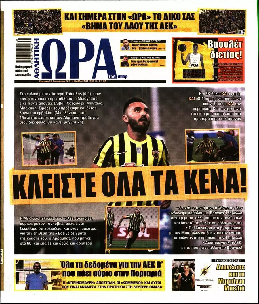 HOT NEWS ΑΝΑΒΟΛΕΣ ΑΓΩΝΩΝ ΑΤΟΜΙΚΟ ΓΚΟΝΘΑΛΕΘ-ΦΟΥΝΤΑΣ-ΣΕΝΓΚΕΛΙΑ ΚΥΠΕΛΛΟ ΕΡΑΣΙΤΕΧΝΩΝ ΚΛΗΡΩΣΗ ΑΛΛΑΓΗ ΕΔΡΑΣ ΣΕ ΤΡΙΑ ΜΑΤΣ ΟΙ ΟΜΑΔΕΣ ΠΟΥ ΠΡΟΚΡΙΘΗΚΑΝ ΣΤΗ 2Η ΦΑΣΗ ΚΥΠΕΛΛΟ ΕΠΣΗ ΕΦΗΜΕΡΙΔΕΣΚΥΡΙΕΣ ΕΙΔΗΣΕΙΣ Τα πρωτοσέλιδα των αθλητικών εφημερίδων(22/08) Δημοσιογραφικό Τμήμα 22/08/2021 - 09:58 FacebookTwitterWhatsAppLinkedinEmailΤυπώνωCopy URL Δείτε τα πρωτοσέλιδα των αθλητικών εφημερίδων για σήμερα Δευτέρα 22 Αυγούστου του 2021. ΔΙΑΒΑΣΤΕ ΕΠΙΣΗΣ: Αγγ. Κασσωτάκης: «Πρέπει να είμαστε σοβαροί και πειθαρχημένοι» Χαρά στην οικογένεια Χασουράκη – Υποδέχθηκαν το 5ο μέλος Φιλική νίκη του Μαραθώνα κόντρα στο Άλογο Ανακοίνωσε τέσσερις αναβολές αγώνων η ΕΠΣΗ για το σαββατοκύριακο (18-19/10) Αλλαγή έδρας σε τρία παιχνίδια της ΕΠΣΗ Δύο αλλαγές ωρών στα γήπεδα της ΕΠΣΗ την Κυριακή (19/10) ΡΟΗ ΕΙΔΗΣΕΩΝ ΑΕΚΑΤΣΑΜΠΑ Αγγ. Κασσωτάκης: «Πρέπει να είμαστε σοβαροί και πειθαρχημένοι» Δημοσιογραφικό Τμήμα 16/10/2025 23:00 ΑΓ. ΒΑΡΒΑΡΑ Χαρά στην οικογένεια Χασουράκη – Υποδέχθηκαν το 5ο μέλος Πολυχρόνης Αγγελάκης 16/10/2025 22:21 ΜΑΡΑΘΩΝΑΣ Φιλική νίκη του Μαραθώνα κόντρα στο Άλογο Πολυχρόνης Αγγελάκης 16/10/2025 22:19 ΡΟΥΒΑΣ Προετοιμάζεται με απουσίες ο Ρούβας ενόψει Μοχού Πολυχρόνης Αγγελάκης 16/10/2025 21:55 ΑΕΚΑΤΣΑΜΠΑ Μπήκαν Μάρα και Π. Νικολάου, οριστικά εκτός τρεις Δημοσιογραφικό Τμήμα 16/10/2025 21:40 ΓΟΡΤΥΣ Προχωράει η Γόρτυνα ενόψει Δωριέα Πολυχρόνης Αγγελάκης 16/10/2025 21:37 ΠΑΟΚ Ν. Σηφάκης: «Δύσκολο παιχνίδι στο Τυμπάκι, στόχος μας να γινόμαστε καλύτεροι από αγώνα σε αγώνα» Δημοσιογραφικό Τμήμα 16/10/2025 21:23 Όλες οι ειδήσεις ΔΗΜΟΦΙΛΗ Α2 ΕΠΣΗ Ανακοίνωσε τέσσερις αναβολές αγώνων η ΕΠΣΗ για το σαββατοκύριακο (18-19/10) Α1 ΕΠΣΗ Αλλαγή έδρας σε τρία παιχνίδια της ΕΠΣΗ ΕΠΣ - ΕΠΟ Δύο αλλαγές ωρών στα γήπεδα της ΕΠΣΗ την Κυριακή (19/10) ΤΥΛΙΣΟΣ Η θέση της Τυλίσου για την αναβολή του αγώνα με τον Αστέρα Μυρτιάς ΑΓΙΟΣ ΙΩΑΝΝΗΣ FC Μεγάλη επιστροφή Γ. Αλατίκ στον Άγιο Ιωάννη