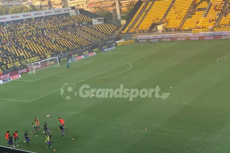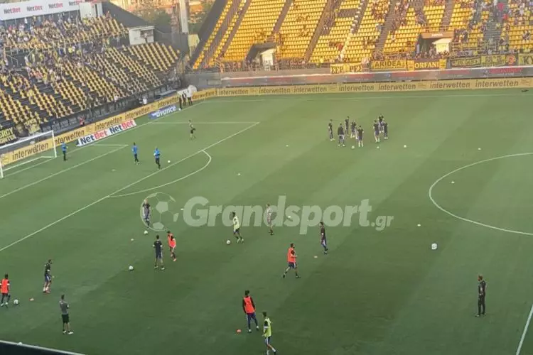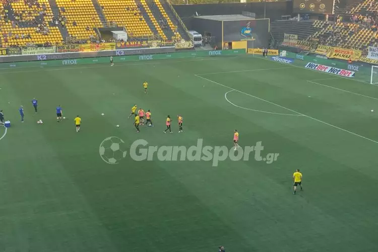 Ήδη οι τερματοφύλακες των δύο ομάδων έχουν βγει στον αγωνιστικό χώρο για το καθιερωμένο ζέσταμα.