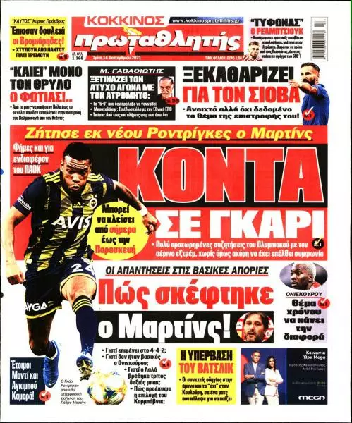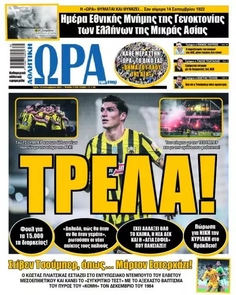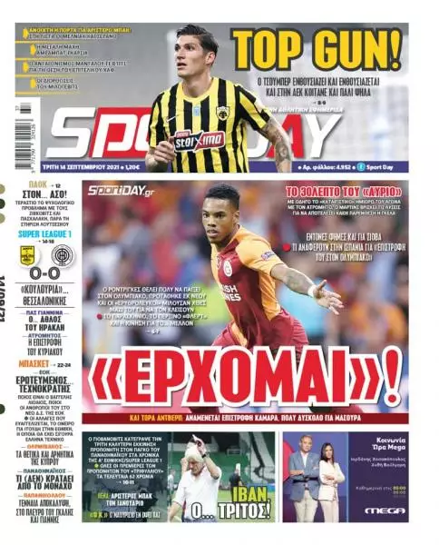Τα αθλητικά πρωτοσέλιδα της Τρίτης 14/9