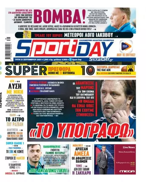 HOT NEWS ΠΡΟΓΡΑΜΜΑ ΤΕΤΑΡΤΗΣ MVP Α1 ΕΠΣΗ Λ. ΚΑΛΟΜΟΙΡΗΣ Κ13 ΓΚΛΑΝΤΜΠΑΧ ΠΡΩΤΗ ΜΕΡΑ ΠΡΟΕΠΙΛΟΓΗΣ ΣΤΙΣ ΜΙΚΤΕΣ ΕΠΣΗ ΣΤΗΝ ΚΟΡΥΦΗ Ο ΑΓΡΙΜΑΚΗΣ ΕΦΗΜΕΡΙΔΕΣΚΥΡΙΕΣ ΕΙΔΗΣΕΙΣ Τα αθλητικά πρωτοσέλιδα της Τρίτης 21/9 Κώστας Παπαδόπουλος 21/09/2021 - 08:00 FacebookTwitterWhatsAppLinkedinEmailΤυπώνωCopy URL Διαβάστε όσα γράφουν τα πρωτοσέλιδα των αθλητικών εφημερίδων σε Αθήνα και Θεσσαλονίκη. ΔΙΑΒΑΣΤΕ ΕΠΙΣΗΣ: Κοιτάζουν την συνέχεια στο Λίντο Οι αθλητικές μεταδόσεις της ημέρας (14/10) Ο καιρός σήμερα (14/10) ΕΠΣΗ: Το πρόγραμμα της Τετάρτης (15/10) Ολοκληρώθηκε η πρώτη ημέρα προεπιλογής για τις Μικτές Ομάδες της ΕΠΣ Ηρακλείου Δικαίωση ΟΦΗ στην υπόθεση Παπάζογλου! ΡΟΗ ΕΙΔΗΣΕΩΝ ΛΙΝΤΟ Κοιτάζουν την συνέχεια στο Λίντο Μάνος Φουστανάκης 14/10/2025 09:40 ΧΕΡΣΟΝΗΣΟΣ Στ. Αγριμάκης: «Παιχνίδι με παιχνίδι θα γινόμαστε καλύτεροι Μάνος Φουστανάκης 14/10/2025 09:21 Α1 ΕΠΣΗ ΕΠΣΗ: Το πρόγραμμα του σαββατοκύριακου (18-19/10) Πολυχρόνης Αγγελάκης 14/10/2025 09:00 ΜΕΤΑΔΟΣΕΙΣ Οι αθλητικές μεταδόσεις της ημέρας (14/10) Πολυχρόνης Αγγελάκης 14/10/2025 08:30 ΚΑΙΡΟΣ Ο καιρός σήμερα (14/10) Πολυχρόνης Αγγελάκης 14/10/2025 08:00 ΚΕΡΑΥΝΟΣ Εντείνει τον ρυθμό για Θρίαμβο Αναλήψεως ο Κεραυνός Πολυχρόνης Αγγελάκης 13/10/2025 23:11 ΠΟΑ Β Εντυπωσιακό ξεκίνημα για τον ΠΟΑ Β’ στη νέα σεζόν Πολυχρόνης Αγγελάκης 13/10/2025 23:01 Όλες οι ειδήσεις ΔΗΜΟΦΙΛΗ Α1 ΕΠΣΗ ΕΠΣΗ: Το πρόγραμμα της Τετάρτης (15/10) ΜΙΚΤΕΣ Ολοκληρώθηκε η πρώτη ημέρα προεπιλογής για τις Μικτές Ομάδες της ΕΠΣ Ηρακλείου ΟΦΗ Δικαίωση ΟΦΗ στην υπόθεση Παπάζογλου! ΑΝΘΕΣΤΙΩΝ Ανθεστίων: «Απαιτούμε σεβασμό και ισότιμη αντιμετώπιση από τη διαιτησία» ΔΙΕΘΝΗ Στα χνάρια του πατέρα του: Ο Λευτέρης Καλομοίρης στην Κ13 της Γκλάντμπαχ!