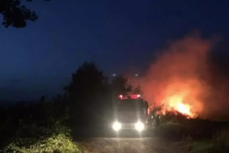 Φωτιά έχει ξεσπάσει το βράδυ της Τρίτης στο χωρίο Θύμη στην Κάρυστο και καίει δασική έκταση.